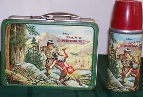 While today’s kids eat the latest cell phones and MP3 players and designer running shoes like candy, Crockett fans could not only sing the “The Ballad of Davy Crockett” with the annoying frequency a later generation would sing “It’s a Small World Isn’t It,” we had our own (rather low-tech) memorabilia. We not only knew that Crockett was born on a table top in Tennessee, we carried our Davy lunch boxes to schools and parks and ate our peanut butter and jelly sandwiches on our 1950s table tops dreaming of heading west and doing great deeds.