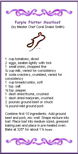 Finally! I’ve been waiting all week to get the recipe for Purple Platter Meatloaf!