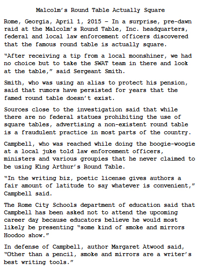 SWAT team raids Malcolm’s Round Table On April 1, 2015 By Malcolm R. CampbellIn fiction Real Round Table – Photograph by Mathew Brady Share this: Click to share on X (Opens in new window) X Click to share on Facebook (Opens in new window) Facebook Like Loading... Related
