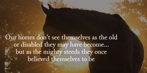 Lucky horses. Both the real rescued one and the ones in the quote. If we humans didn’t see ourselves as old and decrepit as we are but instead saw ourselves as the mighty youth we never were, we’d be put away and not in as nice a sounding place as Sun Kissed Acres (though if it’s a neighbor of yours, shouldn’t it be called Rain Kissed Acres?). But then, I guess all we’d have to do is announce that we are trans-age and that we identify as youngsters.