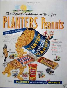 The last scene took place at a grocery store. Okay, when somebody entered the store, what kinds of posters, die-cut signs, and hand-written specials did they see on the window sill or window? I found a great Noxzema suburn cream sign, a nice Planters Peanuts poster, and a list of the meat prices per pound.- The current scene takes place in the backyard of some well-to-do people. While we had cheap pre-Weber metal barbecue, the fru fru people often had barbecue grills made of brick, 44 inches wide are larger.