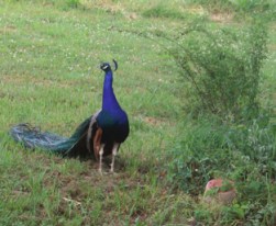 This peacock is one of our frequent visitors from the farm across the road. He looks for bugs while we’re mowing the yard or soon after. Often has several peahens with him. The focus is a bit off because he was so close I had to take the photo through the dirty windows on the front door.- Since I like going grocery shopping on Mondays, Mother Nature likes scheduling the heaviest rains of the month on Monday. Looks like that’s going to be the case tomorrow. Drat.