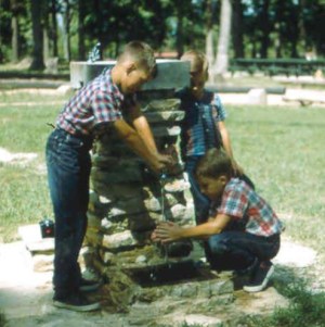 • Today’s Facebook memory is a photo of my two brothers and me pretending to use a water fountain at Fairview Park in Decatur, Illinois where our grandparents lived. We spent more hours in that park than at their apartment. My memories of Decatur have worked their way into some of my stories.