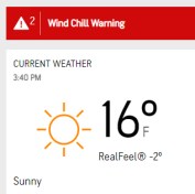 The temperature is 16° up from 13°. The wind chill is -2°, though it was lower during the night when the winds were brisker than necessary.- Dear keyboard manufacturers. Why did you take the ° symbol off the keyboard so that I now have to type a COBOL routine to use it?