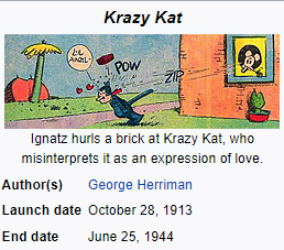 P.S. My favorite comic strip of all time was Krazy Kat. It ran before I was around, but my father had the collected episodes in a book.