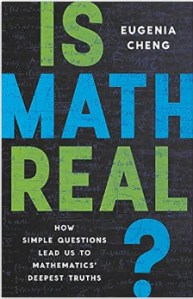 An NPR story states that “From start to finish, Eugenia’s book explores the ways we do math outside the classroom — and how they upend the binary true/false we’re taught from an early age. From examples where 1+1 does not equal two, to the concept of infinity, Is Math Real? relieves us of that rigidity and encourages us to reevaluate our relationship to the abstract. She reminds us that math is driven by human curiosity and creativity—not by right and wrong answers.”