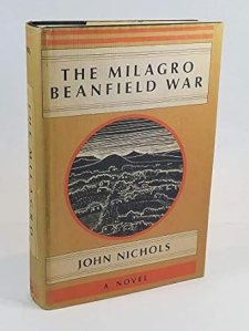 “Joe Mondragon, a feisty hustler with a talent for trouble, slammed his battered pickup to a stop, tugged on his gumboots, and marched into the arid patch of ground. Carefully (and also illegally), he tapped into the main irrigation channel. And so began-though few knew it at the time of Milagro beanfield war. But like everything else in the dirt-poor town of Milagro, it would be a patchwork war, fought more by tactical retreats than by battlefield victories. Gradually, the small farmers and sheepmen begin to rally to Joe’s beanfield as the symbol of their lost rights and their lost lands. And downstate in the capital, the Anglo water barons and power brokers huddle in urgent conference, intent on destroying that symbol before it destroys their multimillion-dollar land-development schemes.