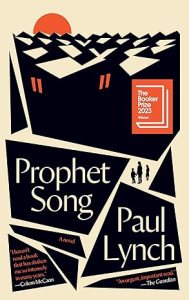 ock at the door, Prophet Song forces us out of our complacency as we follow the terrifying plight of a woman seeking to protect her family in an Ireland descending into totalitarianism. We felt unsettled from the start, submerged in – and haunted by – the sustained claustrophobia of Lynch’s powerfully constructed world. He flinches from nothing, depicting the reality of state violence and displacement and offering no easy consolations. Here the sentence is stretched to its limits – Lynch pulls off feats of language that are stunning to witness. He has the heart of a poet, using repetition and recurring motifs to create a visceral reading experience. This is a triumph of emotional storytelling, bracing and brave. With great vividness, Prophet Song captures the social and political anxieties of our current moment. Readers will find it soul-shattering and true, and will not soon forget its warnings.’ – Esi Edugyan, Chair, Booker Prize.