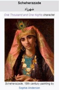 Scheherazade, the teller of the tales in The Book of the Thousand Nights and a Night, captured my imagination when I was in junior high school. The stories are fascinating. So was the idea of the narrator telling one story per night–but never quite ending it–to keep the king from killing her when a tale ends which he had threatened to do. Or perhaps it was her name that drew me in and never let me go.