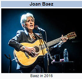 • How the hell did it happen. Joan Baez, whom I had a school-boy crush on years ago, is now 82. I approved of her songs, and her anti-war stance, but not her relationship with Bob Dylan. While she can’t hit the high notes the way she did when she was young, I will like to hear her sing.
