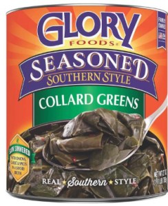 “Collard greens are a staple vegetable in Southern U.S. cuisine. They are often prepared with other similar green leaf vegetables, such as spinach, kale, turnip greens, and mustard greens in the dish called “mixed greens”. Typically used in combination with collard greens are smoked and salted meats (ham hocks, smoked turkey drumsticks, smoked turkey necks, pork neckbones, fatback or other fatty meat), diced onions, vinegar, salt, and black pepper, white pepper, or crushed red pepper, and some cooks add a small amount of sugar. Traditionally, collards are eaten on New Year’s Day, along with black-eyed peas or field peas and cornbread, to ensure wealth in the coming year. Cornbread is used to soak up the “pot liquor”, a nutrient-rich collard broth. Collard greens may also be thinly sliced and fermented to make a collard sauerkraut that is often cooked with flat dumplings.” Wikipedia