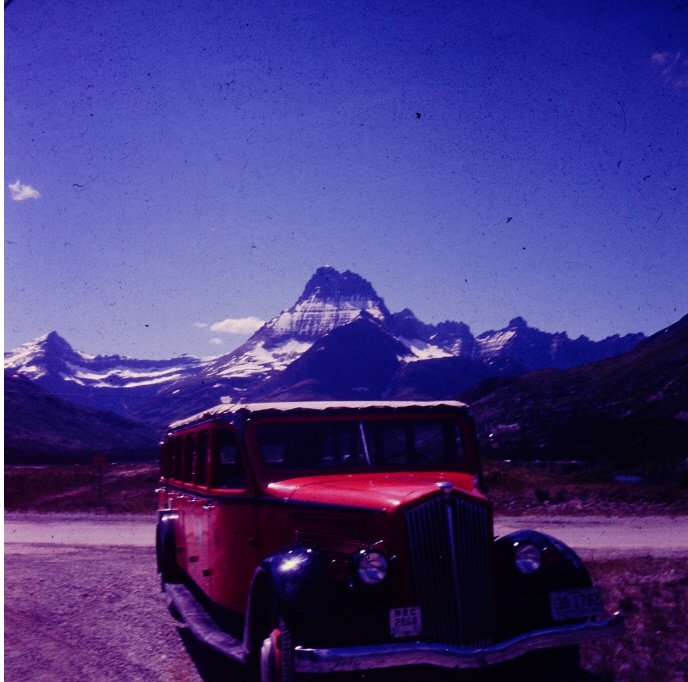 One of Glacier’s iconic red buses before they were all retrofitted with automatic transmission. I dislike automatic transmission but applaud the dual-fuel, propane or gasoline, the buses now use.