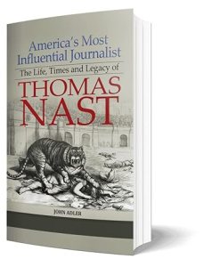 “‘After more than 100 years of having to rely on Albert Bigelow Paine’s entertaining but hagiographic and error-filled Thomas Nast His Period and His Pictures (1904), we finally have a biography of America’s greatest political cartoonist worthy of replacing it. John Adler has created a meticulous, comprehensive, fair, and accurate biography of the father of American cartooning. With more than two decades devoted to studying Nast’s entire massive output behind him, Adler is the perfect guide for 21st century readers interested in understanding Nast’s cartoons, learning about the politics that prompted them, and discerning the impact they had. At the end of journeying through this massive tome, we are left with an appreciation of Nast and his extraordinary achievement like never before.'”