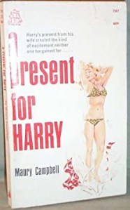 She said I want to show you something but you can never tell your father. That “something” was a paperback novel called A Present for Harry (1967) written my my father’s younger brother Maury. Maury didn’t want Dad to know about it because, well, the cover and the title made it look sexier than it was and, according to my aunt, Maury just didn’t think it would help family harmony for the existence of the book, worse yet, the book itself, to get back to Florida where my parents lived.