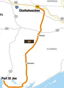 The St. Joe Paper Company in the 1950s when my novels are set, had a massive influence in the panhandle: paper mill, landholdings, a railroad called the Apalachicola Northern that carried wood products from the coastal mill to Quincy, Florida for transfer to mainline railroads. The paper company, part of a trust established by the du Pont family, still exists but focuses on commercial and residential real estate. The railroad, named the Apalachicola Northern, was referred to as the Port St. Joe Route. (It still exists as part of a conglomerate.)