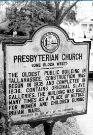 The First Presbyterian Church in Tallahassee is the capital’s oldest building in continual use. It was dedicated in 1838. Atypical in the South, the church accepted slaves as members who sat in a balcony that runs along three sides of the sanctuary’s “second floor.” Earlier, the church served as a refuge during the Seminole Wars and then, in the 1960s, as a leader in the civil rights movement.