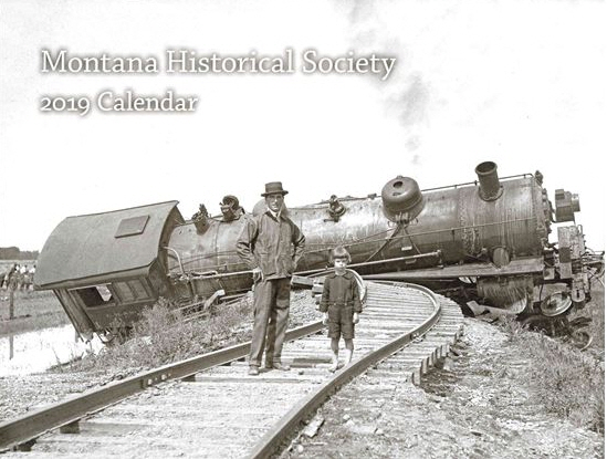 In our kitchen, we keep a colorful scenic calendar, sometimes featuring wildlife and sometimes featuring scenes from national parks and other inspiring landscapes. In my den, I always have a calendar of historic black and white photographs. It comes with my membership in the Montana Historical Society (MHS). These old photographs tell many stories and I never tire of looking at them throughout the year. As more and more archives are digitized, pictures such as those in the calendar are often available for research online. Here’s the cover of my MHS calendar for 2019: